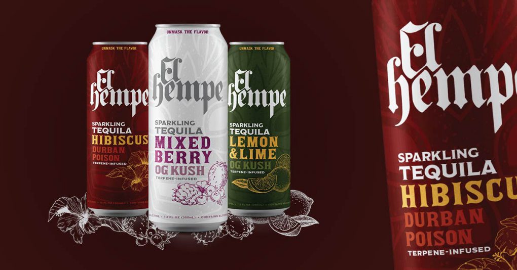 Combining several current beverage trends, El Hempe is a new brand of terpene-infused agave tequila seltzers now available in California and Oregon. Designed to replicate the aromas and nose of cannabis but without THC or CBD, the beverage comes in three flavors: Lemon-Lime OG Kush (5% ABV), Mixed Berry OG Kush (5% ABV) and Hibiscus Durban Poison (8% ABV).