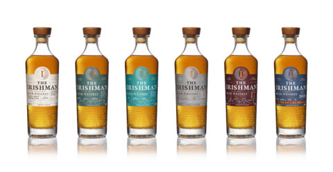 A new colour palette of understated cream, green, grey, blue and burgundy is applied to the labels of the six core expressions of The Irishman range.