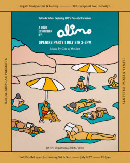BROOKLYN, N.Y.— Ilegal Mezcal, a longtime supporter of independent artists, is showcasing the first solo exhibit from multimedia artist Alimo, best known for his curvy post-pop imagery and highly saturated colors. Solitude Safari: Exploring NYC’s Peaceful Paradises will be exhibited on weekends from July 8-27 at the Ilegal headquarters in Greenpoint, Brooklyn.