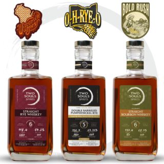 Two Souls Spirits 5-year Dark Pumpernickel Rye featuring Middle West Spirits, “O-H-RYE-O” – 126.7 proof, 185 bottles, finished in a hazmat rye barrel ($94.99)