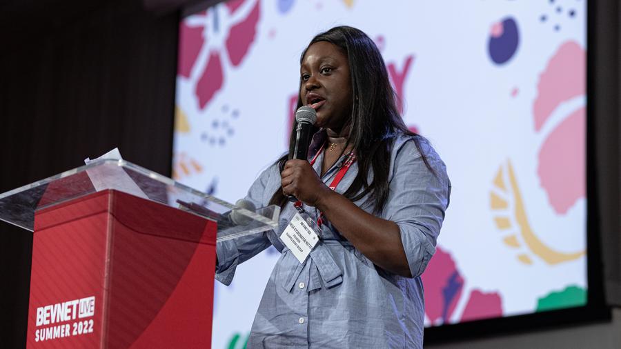 Akua Kyerematen Nettey, Founder of Berry Bissap, presents her brand in the final round of New Beverage Showdown 23.
